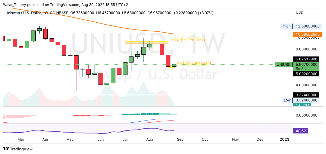 SponsoredUNI Kurs fällt exakt zur Golden Ratio bei rund 5,8 USD