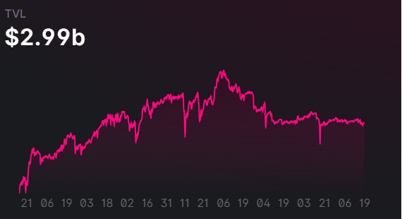 Am 20. Mai 2021 betrug der TVL noch rund 280 Millionen US-Dollar, und stieg dann im Mai. 2023 auf rund 3,5 Milliarden US-Dollar an. Zum Zeitpunkt der Erstellung des Artikels beträgt der TVL immer noch rund 3 Milliarden US-Dollar.