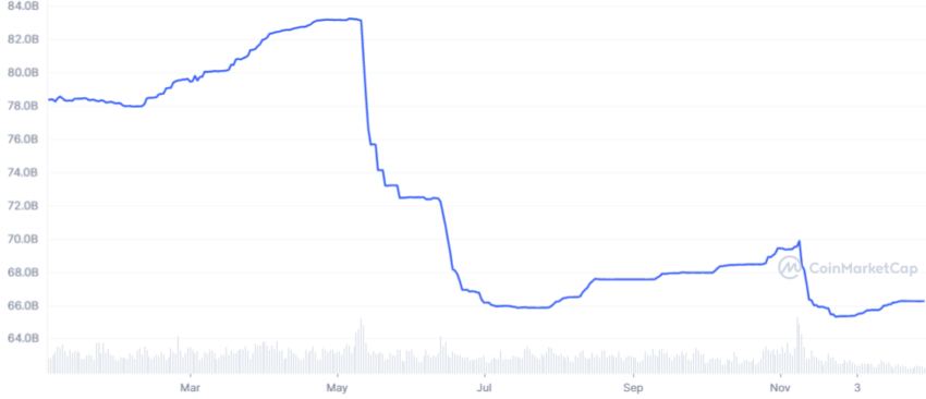 USDT ist zwar nach wie vor der dominierende Stablecoin auf dem Kryptomarkt, doch Konkurrenten wie USDC und BUSD konnten im Jahr 2022 zunehmend aufholen. Zum Vergleich: Die Marktkapitalisierung von Tether sank im Berichtszeitraum von einem Höchststand bei 83,13 Mrd. USD auf nur noch 65,31 Mrd. USD. Andererseits stieg die Marktkapitalisierung von USDC auf 56 Mrd. USD, bevor sie ebenso zurückging.