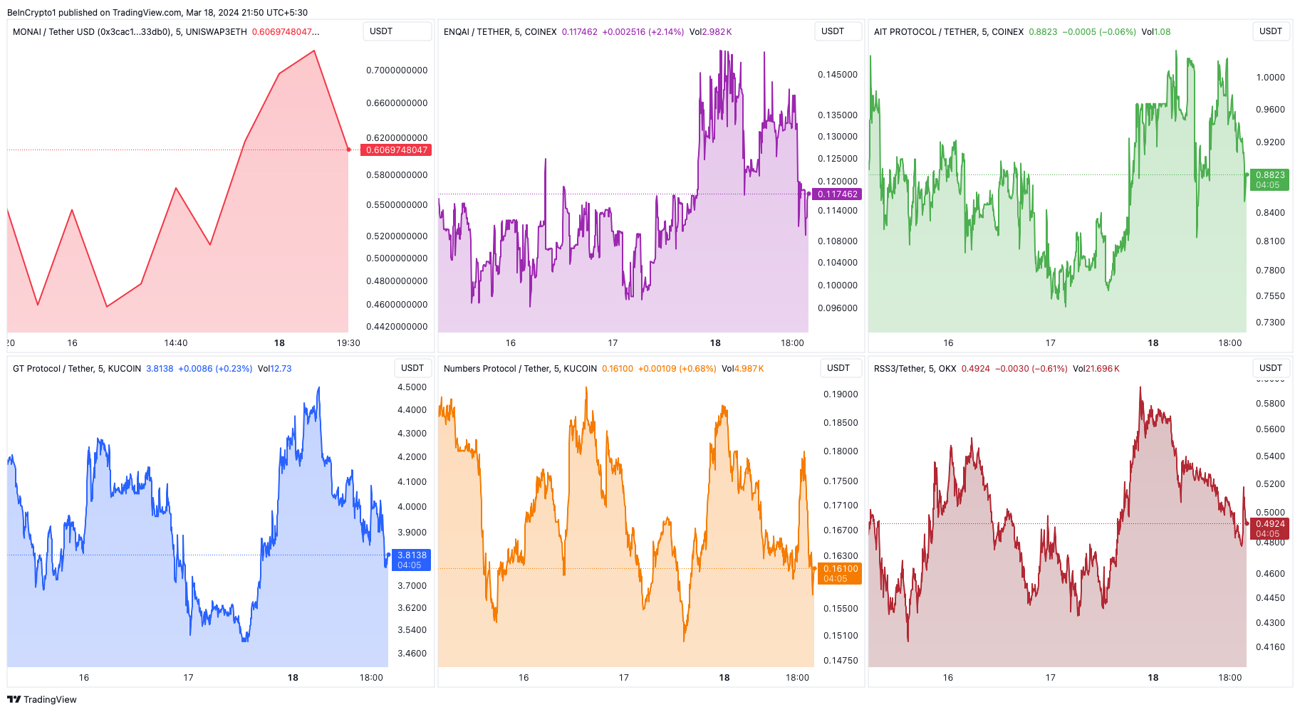 “Der Aufstieg von AI auf dem Kryptomarkt ist unaufhaltsam. Es entstehen viele AI-Krypto-Projekte, die die AI-Technologie nutzen, um die Branche zu innovieren und zu verändern. Da sich AI und Blockchain-Infrastruktur weiter entwickeln, ist es nur eine Frage der Zeit, bis sie sich überschneiden und AI direkt mit Blockchains interagiert. Darüber hinaus ist die Nvidia GTC (GPU Technology Conference) ein wichtiger Impulsgeber für AI-Token und zieht hochkarätige Branchenvertreter an”, erklärte Fencer.