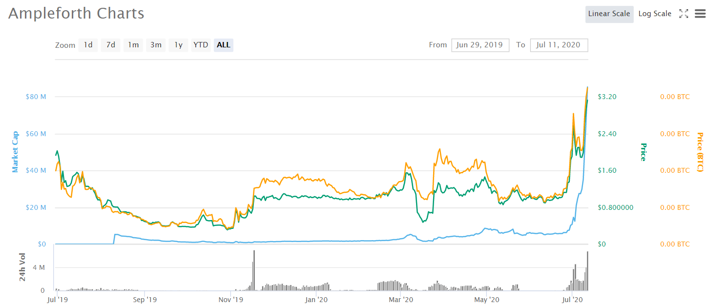 Was Friedman vermutlich nicht wusste, ist dass es eine solche Kryptowährung bereits gibt. Ampleforth (AMPL) operiert nach einem sehr ähnlichen Modell. Zufälligerweise kam es bereits im Vorfeld zu dem Gespräch zwischen Friedman und Tuman zu einer Nachfragespitze für AMPL. Der Token, welcher eigentlich an den US-Dollar gekoppelt sein sollte wird derzeit für 3,13 USD gehandelt.