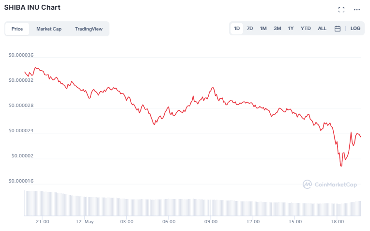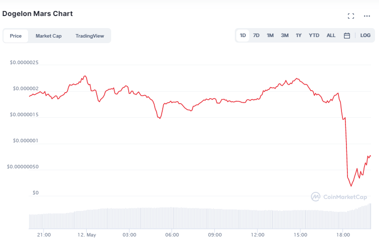 Infolgedessen krachte auch der Akita Inu Preis ein und verlor in den letzten 24 Stunden fast 50 Prozent an Wert. Ganz ähnlich ging es dem Dogelon Mars (ELON) Preis, der in den letzten 24 Stunden sogar fast 60 Prozent an Wert eingebüßt hat.