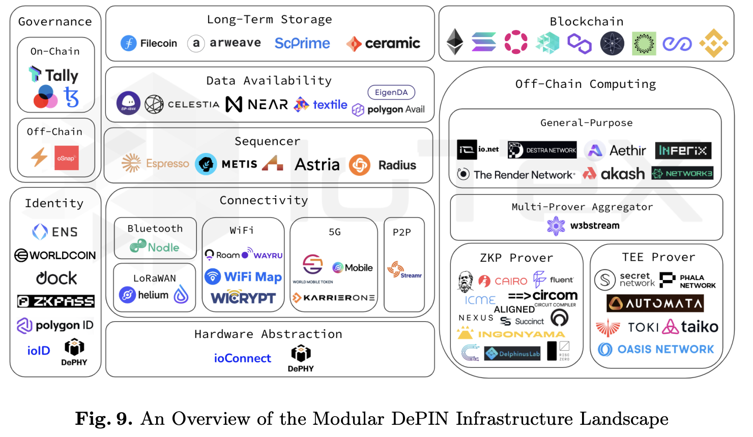 Darüber hinaus wurden die Sequenzer- und Datenverfügbarkeitsmodule aus bestehenden Lösungen angepasst, um besser auf DePin-Anwendungen zugeschnitten zu sein. Langzeitspeicherlösungen wie Filecoin (FIL) und Arweave (AR) spielen eine entscheidende Rolle bei der Erfüllung der Speicherbedürfnisse dieser Anwendungen. Während Blockchain-Plattformen wie Ethereum (ETH), IoTeX und Solana (SOL) eine wesentliche Infrastruktur für die Entwicklung bereitstellen.