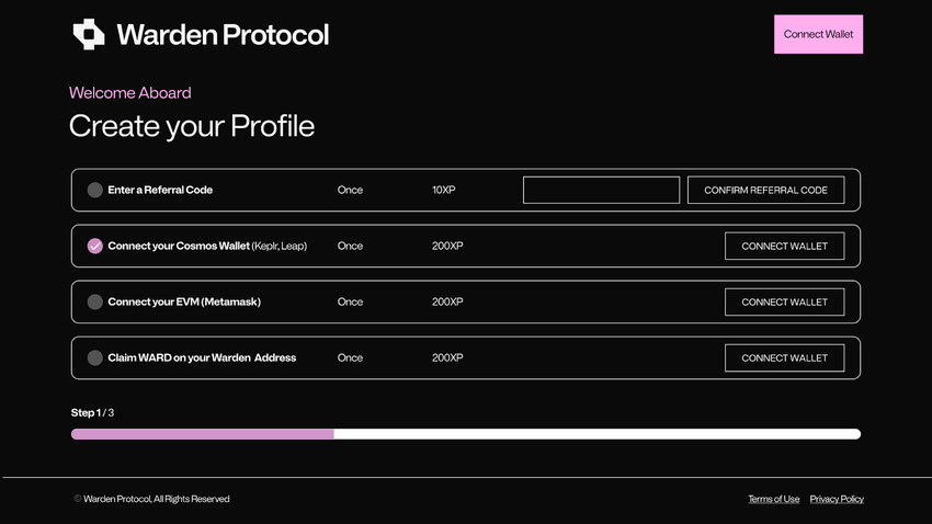 - Netzwerkinteraktion: Nach dem Onboarding können Benutzer Punkte sammeln, indem sie sich am Warden Protocol Buenavista Testnet und der SpaceWard OmniApp beteiligen. Mehr Interaktion führt zu mehr Punkten.