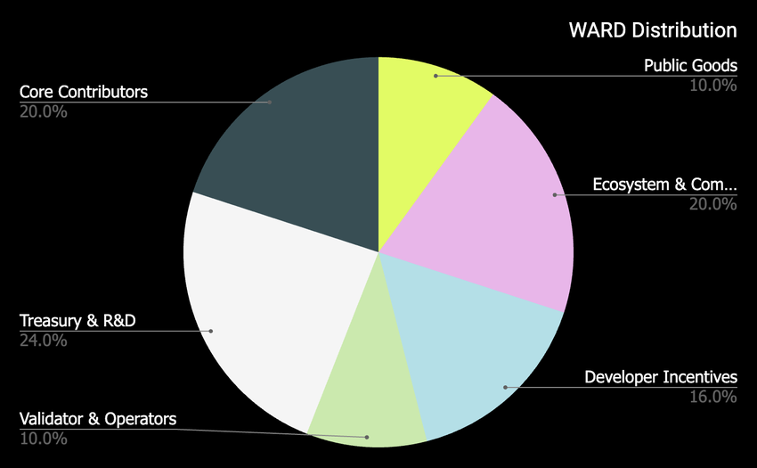 WARD ist der native Utility-Token des Warden Protocol-Ökosystems, der Governance, Staking und Protokollgebühren erleichtert und als Zahlungsmittel für Betreiber dient. Die WARD-Token-Verteilung verwendet einen fairen Startmechanismus, der eine gerechte Verteilung und schnelles Engagement der Stakeholder gewährleistet. Diese Methode hilft, Marktmanipulationen zu verhindern und fördert eine ausgewogene Verteilung der Token.