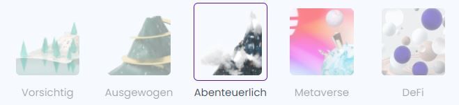 Je nachdem wie risikoaffin du bist, kannst du z.B. zwischen dem vorsichtigen und dem abenteuerlichen Portfolio wählen. Im Hintergrund investiert Coinpanion für dich in einen Korb aus verschiedenen Kryptowährungen, welche mehr oder minder risikoreich sind. Dieser Korb wird zu 100 % datenbasiert zusammengestellt. So befindet sich im vorsichtigen Portfolio ein größerer Anteil an Stablecoins, wohingegen das abenteuerliche Portfolio hauptsächlich aus Bitcoin- und Altcoins besteht.