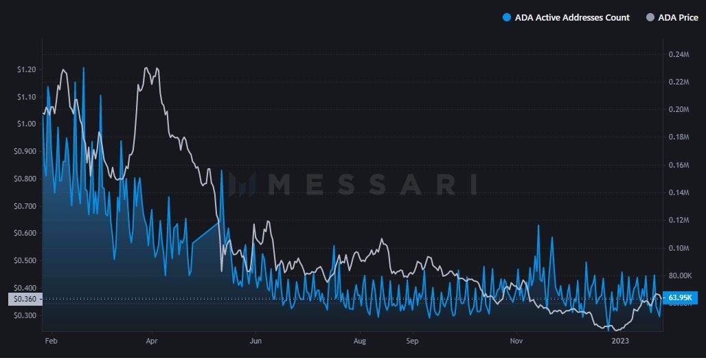 Im Vergleich zum Vorjahr ist die Zahl der aktiven Adressen jedoch deutlich zurückgegangen (rund 70 %). Der jüngste Anstieg und die Entwickleraktivität deuten jedoch darauf hin, dass das Ökosystem von Cardano 2022 weiter florieren könnte.