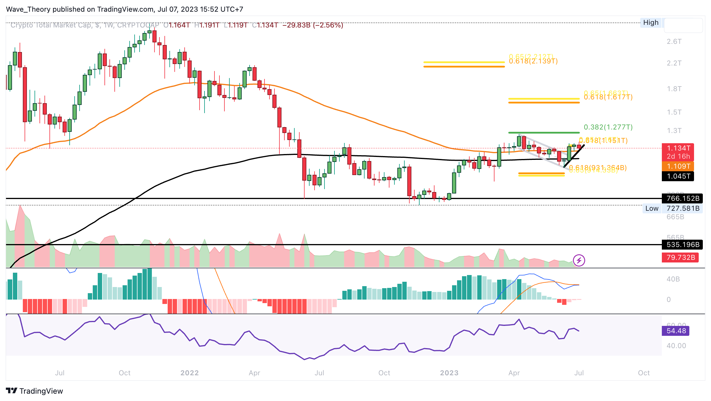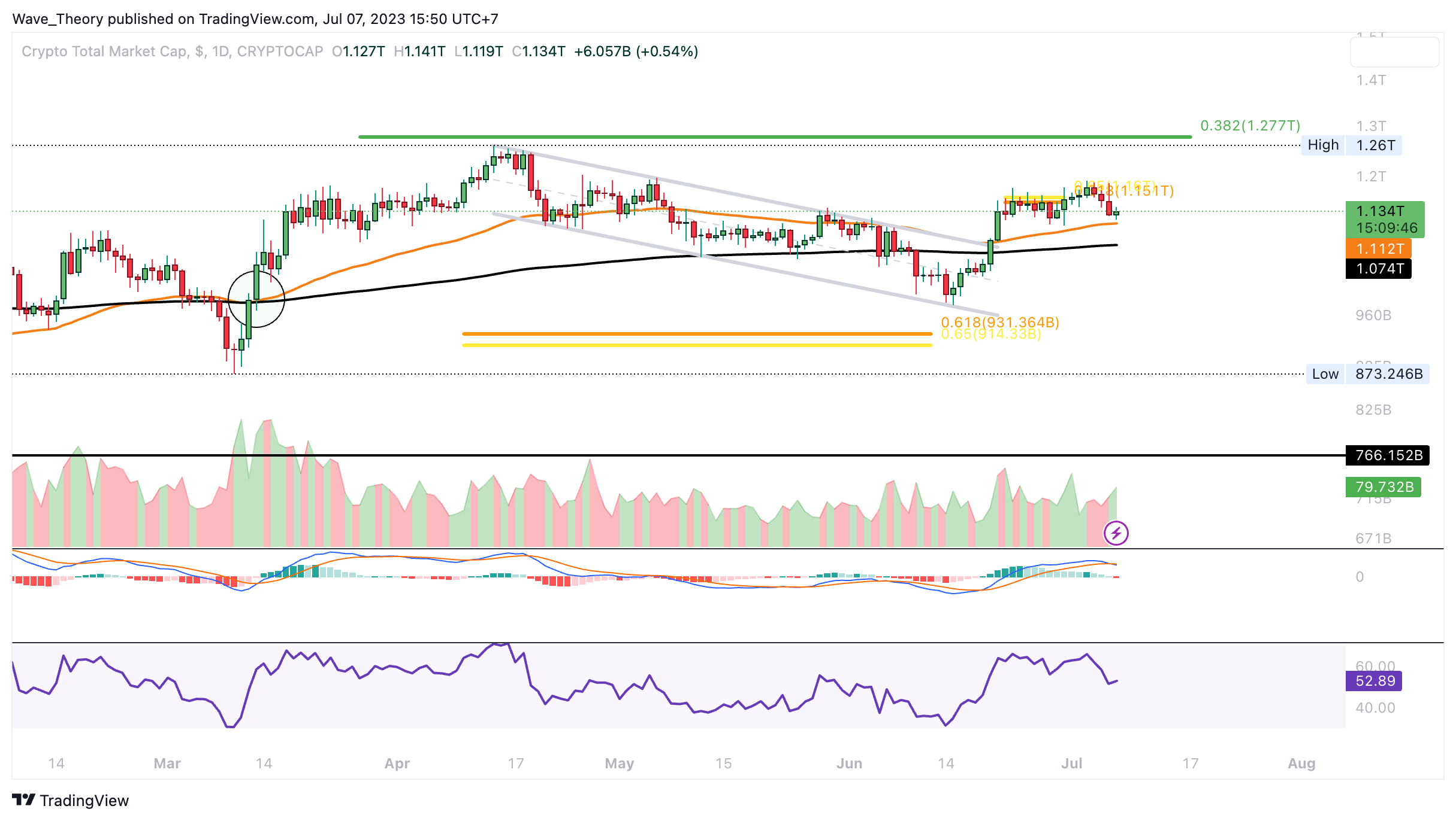 Der Krypto-Markt konnte den Golden Ratio Widerstand bei rund 1,15 Billionen USD überwinden
