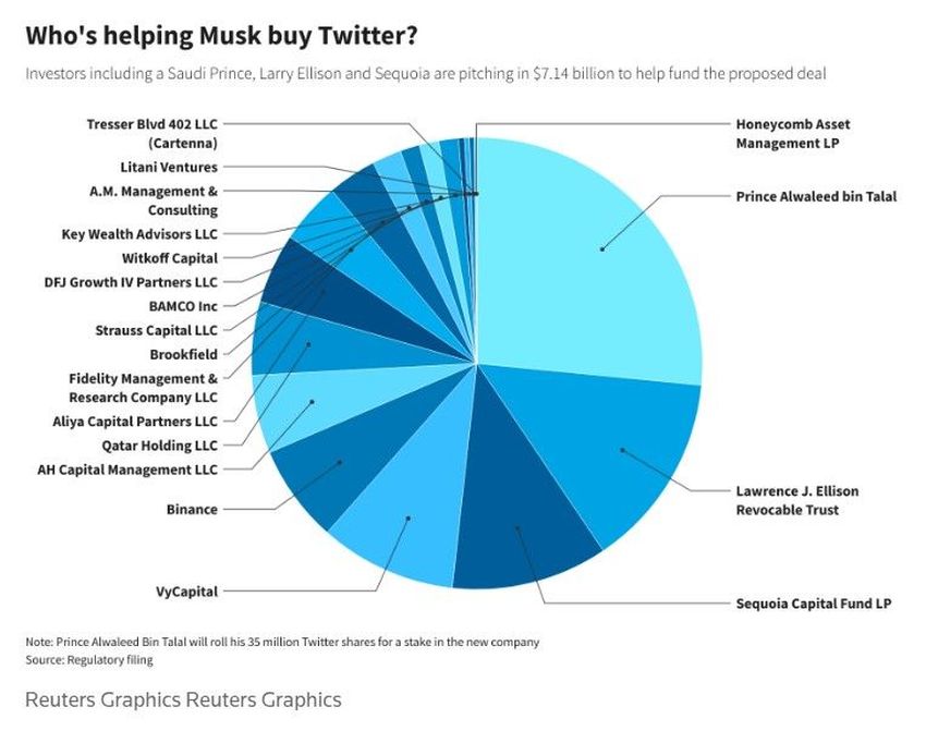Der saudi-arabische Prinz Alwaleed bin Talal, der zuvor gegen den Twitter-Deal war, ist nun auch bereit, seinen Anteil von rund 35 Millionen Aktien (ungefähr 1,9 Milliarden US-Dollar) in die Übernahme einzubringen.