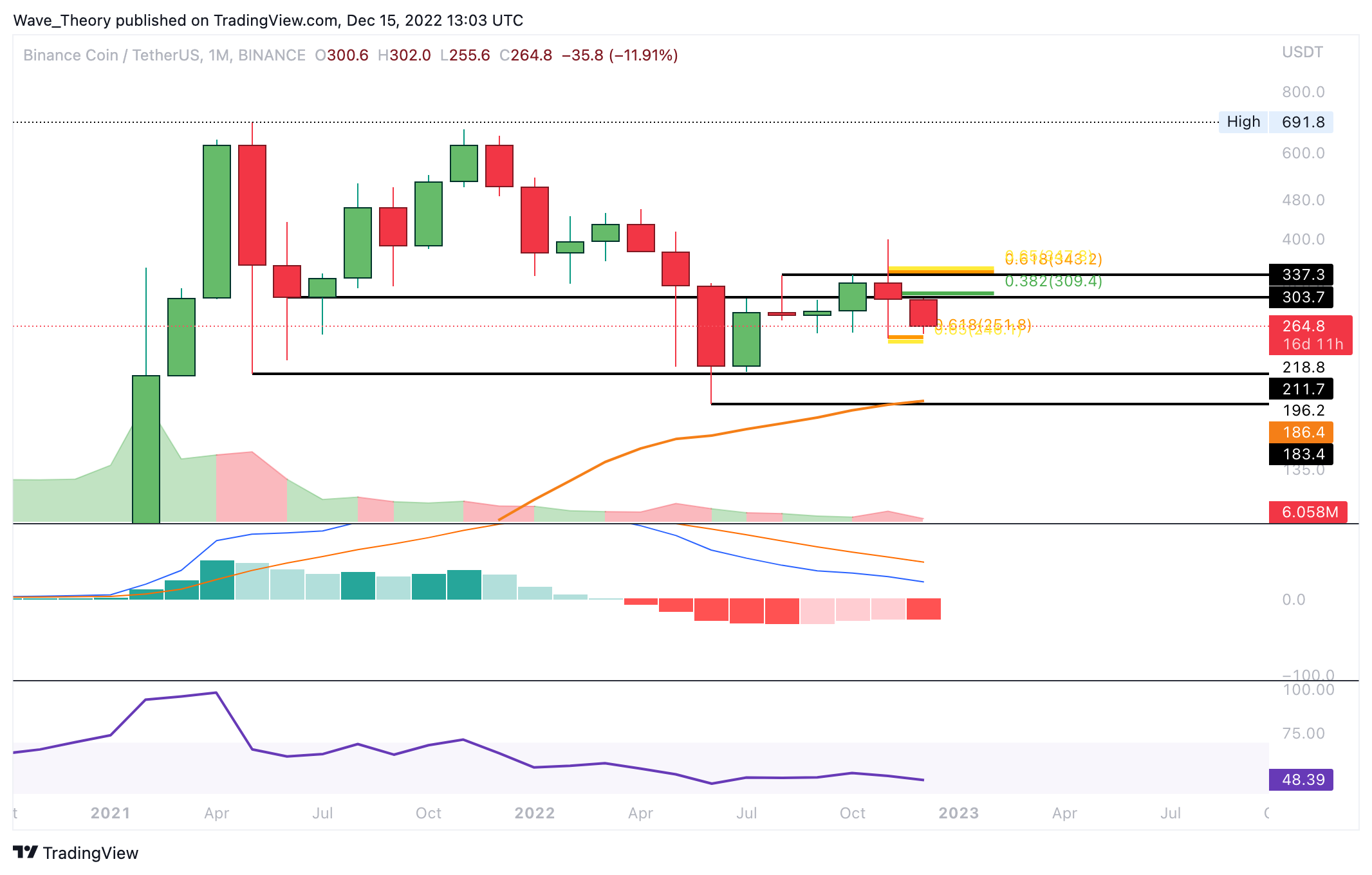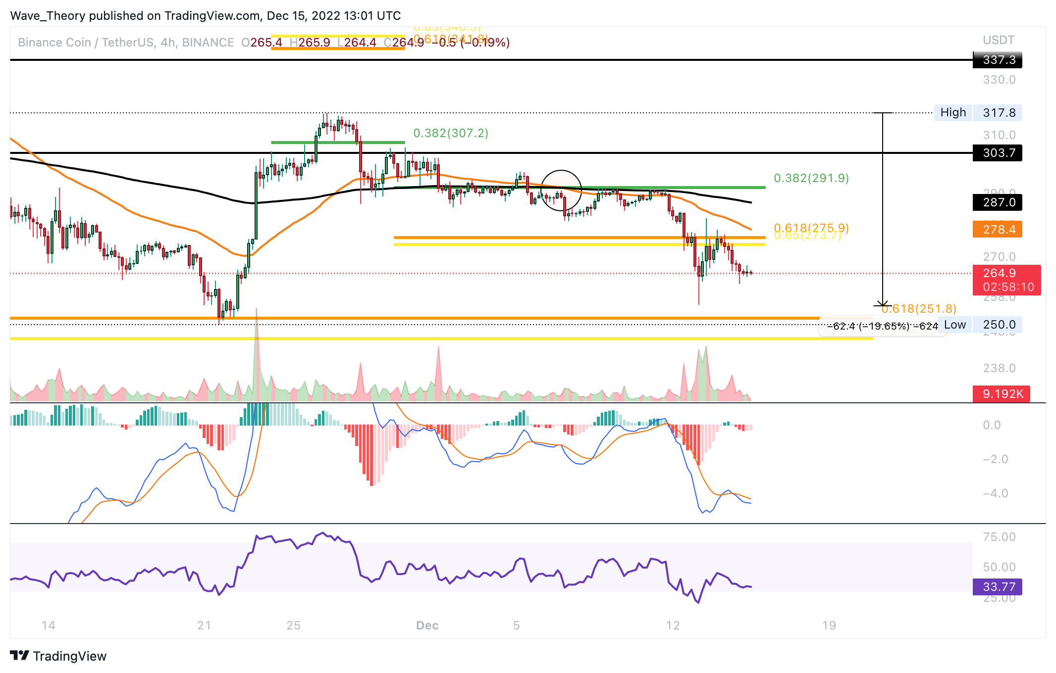 Der Binance Coin Kurs durchbrach die Golden Ratio Unterstützung bei rund 275 USD bärisch