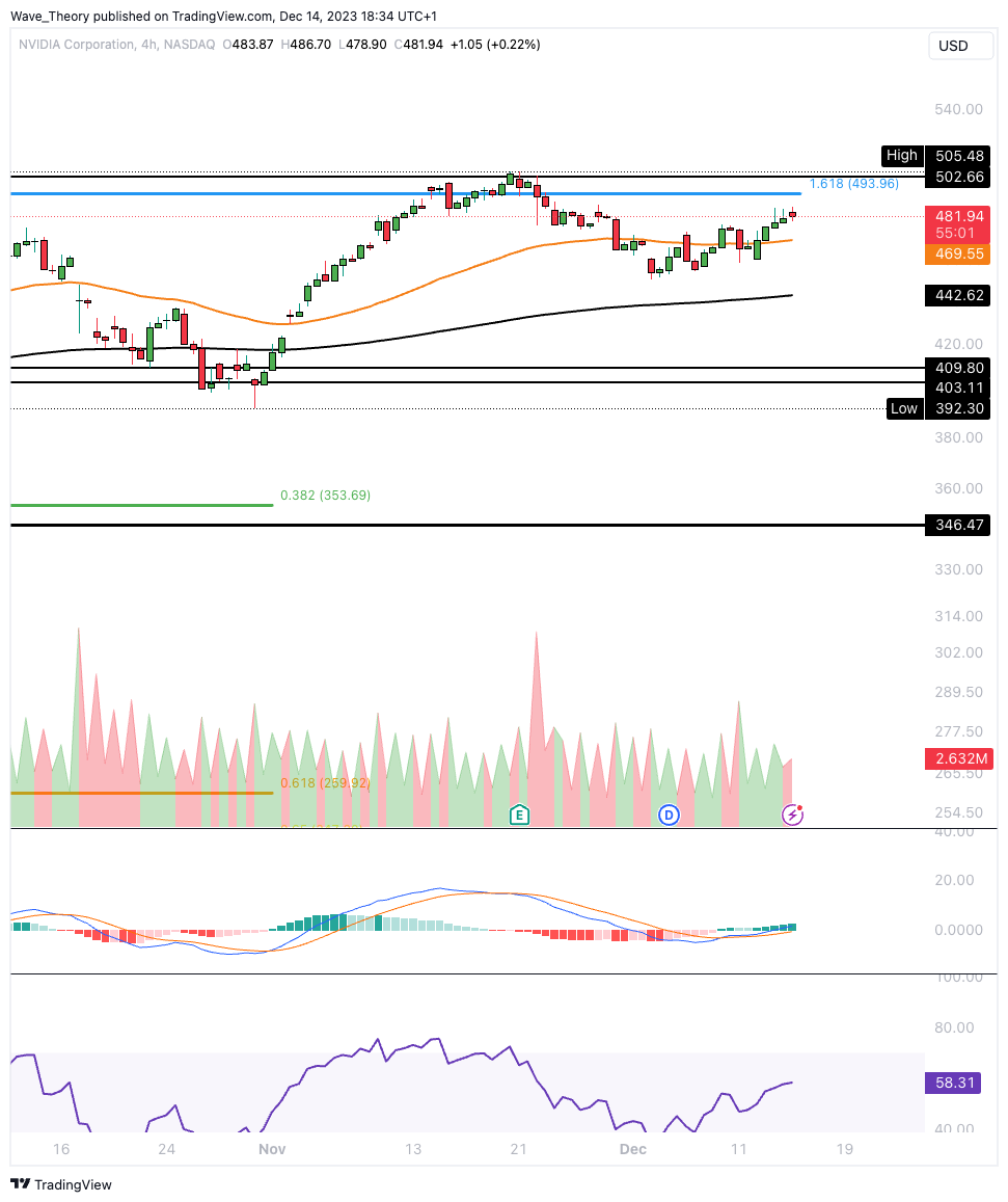 Wird die Nvidia Aktie den Fib Widerstand bei rund 493 USD brechen können?