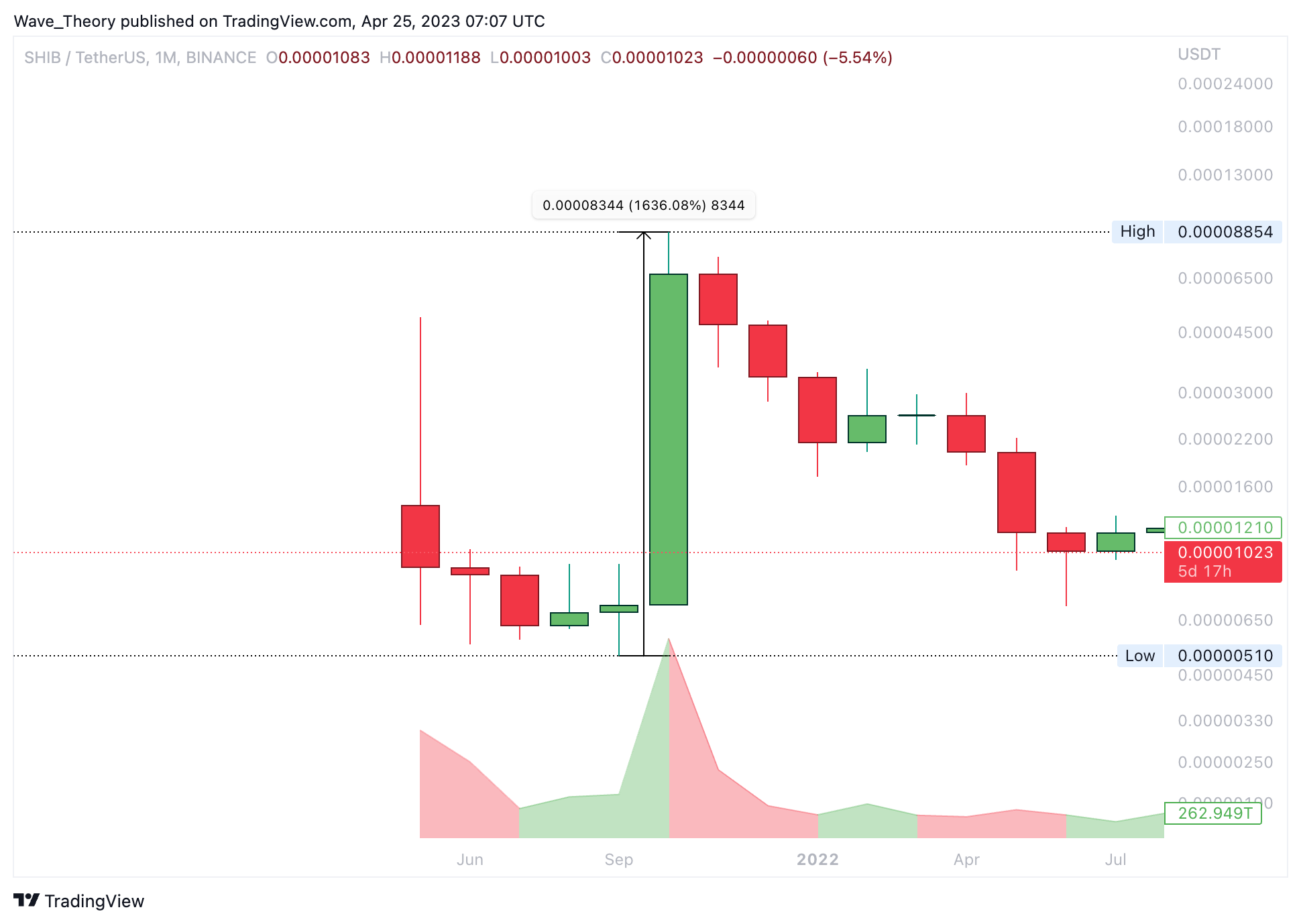 Wenn wir von Erfolgsstory reden, dann meinen wir die gewaltigen Kursgewinne, die Memecoins wie Shiba Inu in Bullenmärkten hinlegen konnten. Denn in weniger als zwei Monaten konnte der Shiba Inu Coin im Jahr 2021 über 1.636 % steigen. Das gilt allerdings lediglich für die Zeit, als Shiba Inu bereits auf Binance gehandelt wurde. Denn wer Shiba Inu Coin bereits vor dieser Zeit auf dezentralen Börsen gekauft hatte, verbuchte deutlich höhere Kursgewinne.
