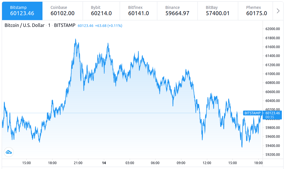 Das Wochenende begann für Bitcoin gut, als BTC am Samstag zum ersten Mal über die Schwelle von 60.000 US-Dollar schritt. Am Sonntag erreichte die älteste Kryptowährung dann ein neues Allzeithoch bei 61.711 US-Dollar, bevor BTC wieder Richtung 60.000 US-Dollar ging.