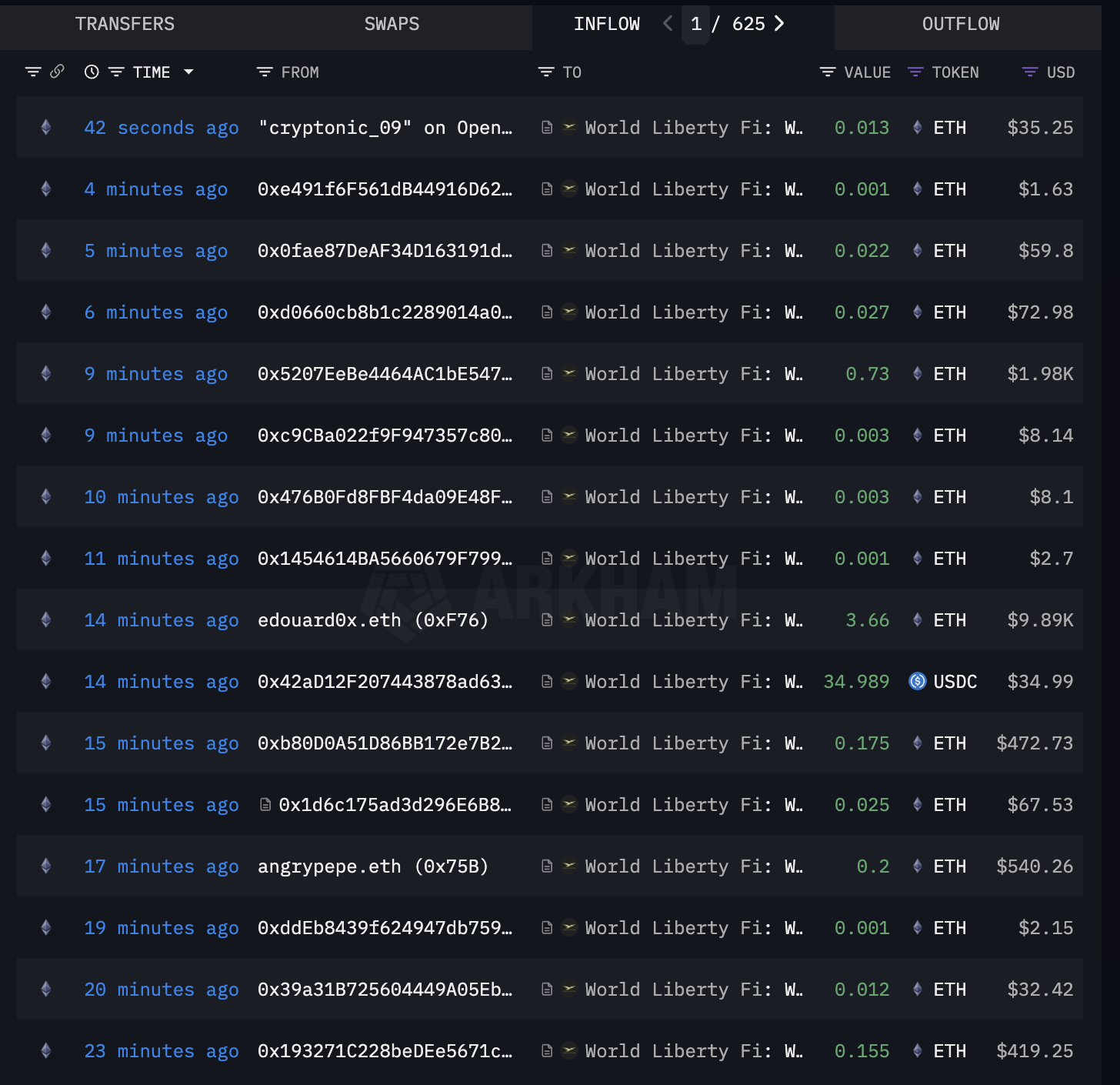 Interessanterweise kaufte World Liberty Financial kurz nach der Durchführung dieser Übertragungen auch ETH. Das Projekt unstakte 19.423 stETH und wandelte sie in ETH um. Zusätzlich wurden 5 Millionen USDC ausgegeben, um 1.826 ETH zu einem Kurs von 2.738 USD pro Token zu kaufen.
