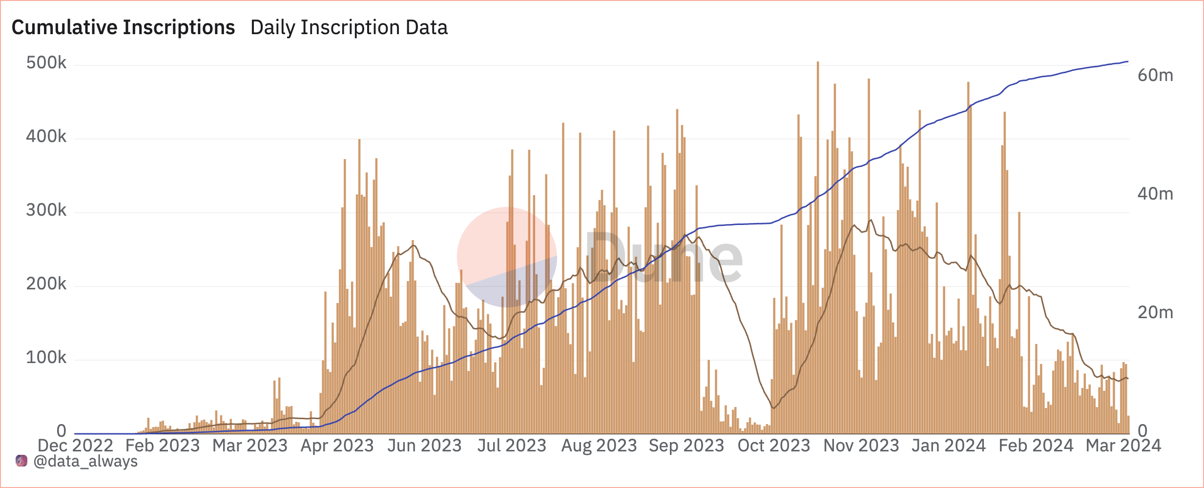 “Inskriptionen können nun eine spezielle “/-/content/:inscription_id”-Syntax verwenden, um den Inhalt anderer Inskriptionen anzufordern. Diese einfache Änderung erschließt viele leistungsstarke Anwendungsfälle. Anstatt zum Beispiel 10.000 JPEG-Dateien für eine PFP-Sammlung einzeln zu beschriften, was ziemlich teuer wäre, könnte man die 200 Merkmale der Sammlung beschriften und dann 10.000 weitere Beschriftungen erstellen, die jeweils eine kleine Menge Code verwenden, um Merkmale anzufordern und das Bild programmatisch zu rendern”, so LeonidasNFT.