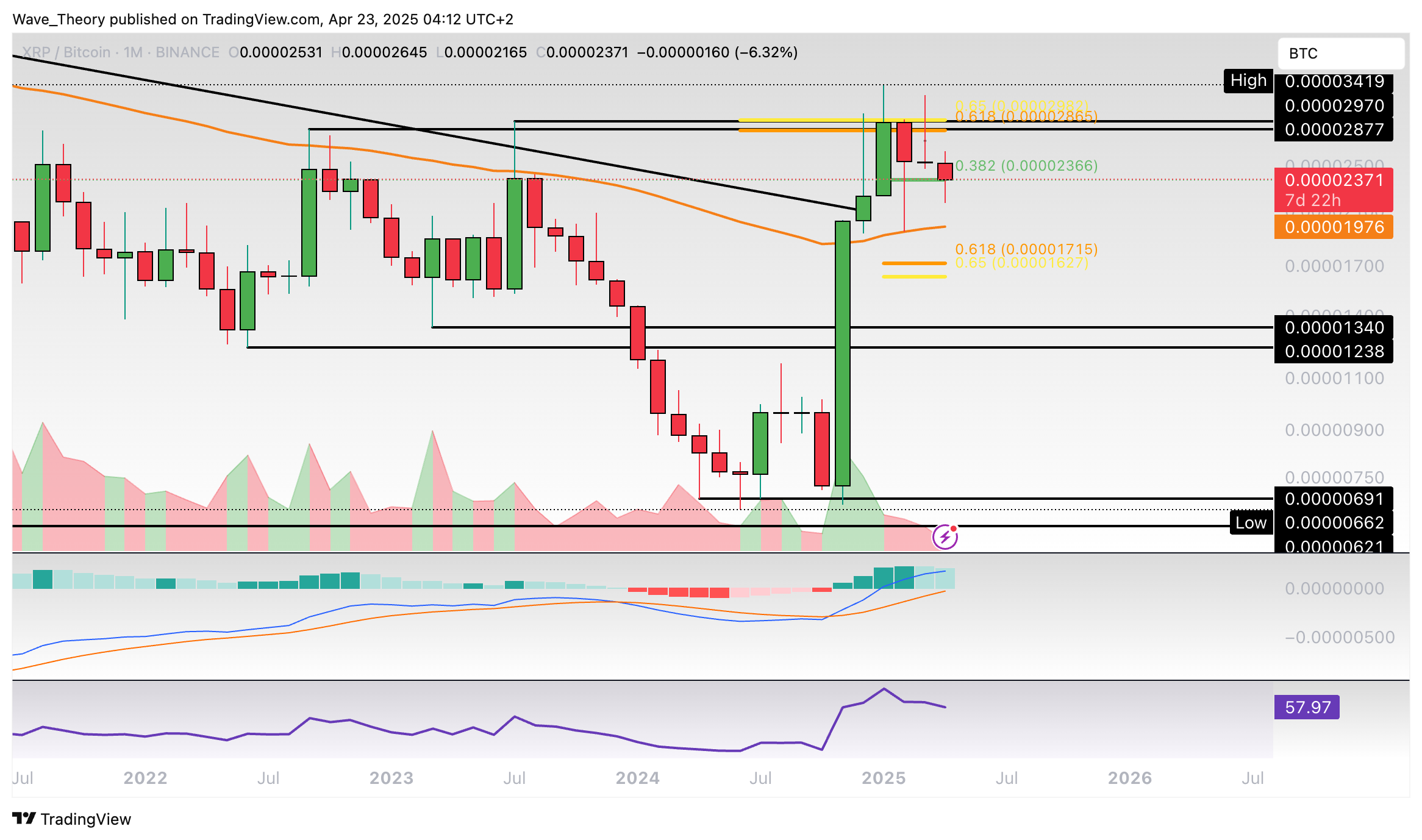 Prallt der XRP Kurs gegen BTC an der 0,382 Fib Unterstützung ab?