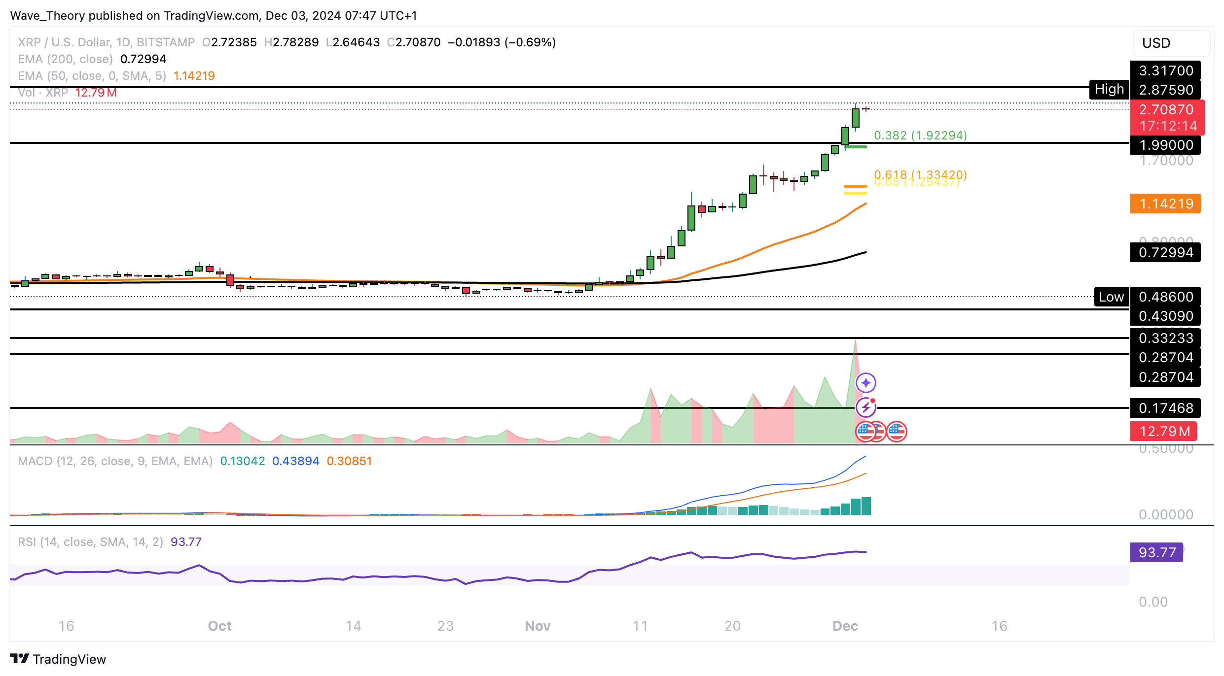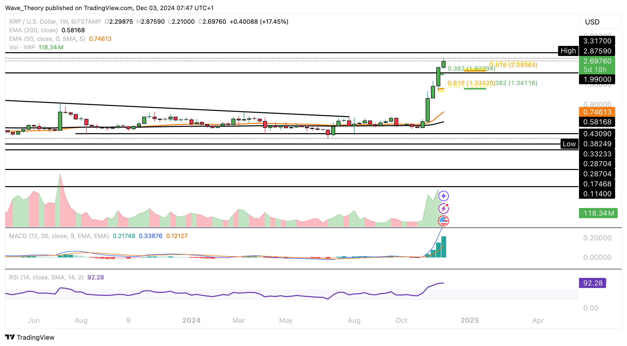 Wird Ripple das ATH erreichen – oder gar ein neues aufstellen? Immerhin hat Ripple entscheidende Fibonacci Widerstände überwunden.