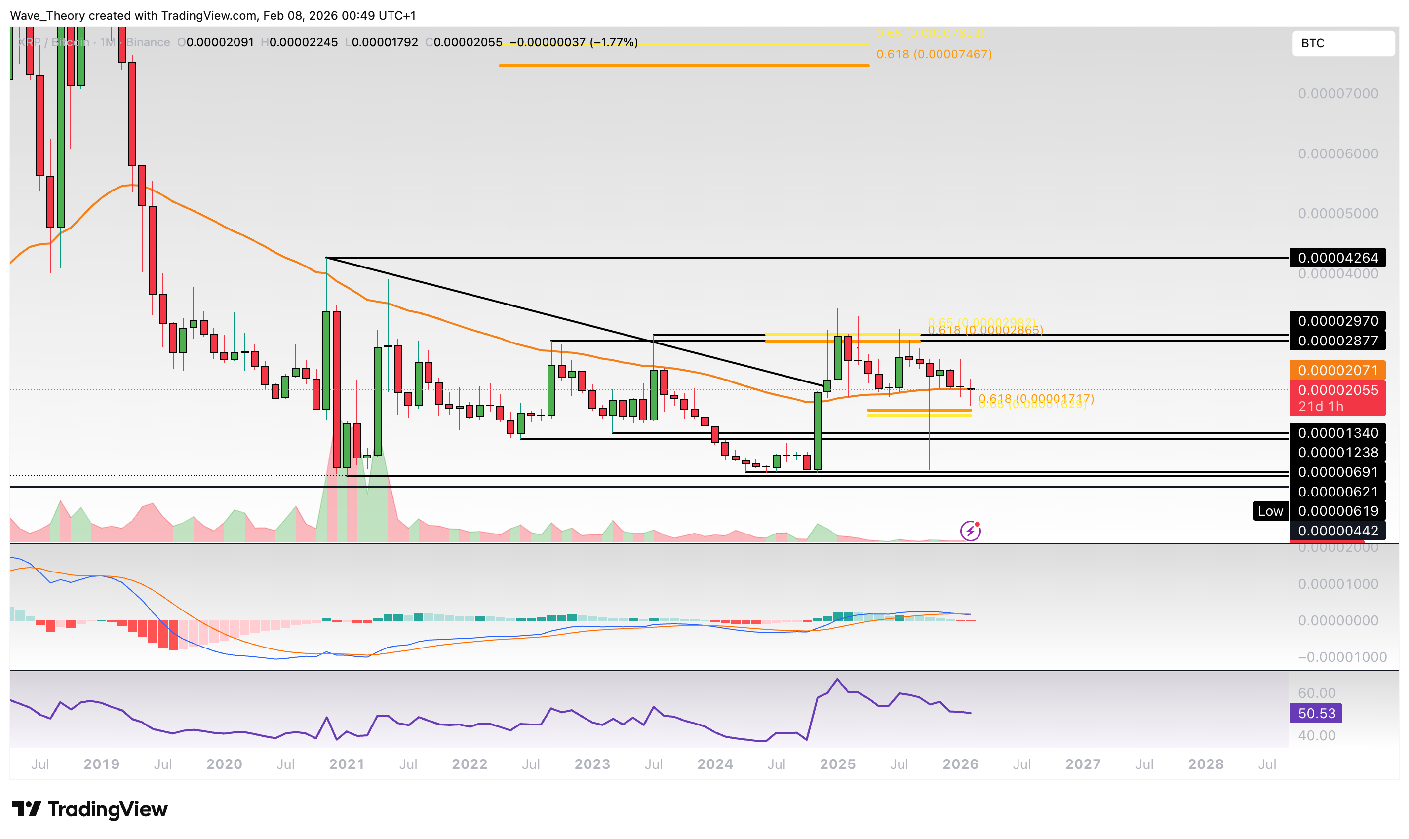 Gegen Bitcoin stößt der XRP Kurs am 50-Monate-EMA auf Unterstützung