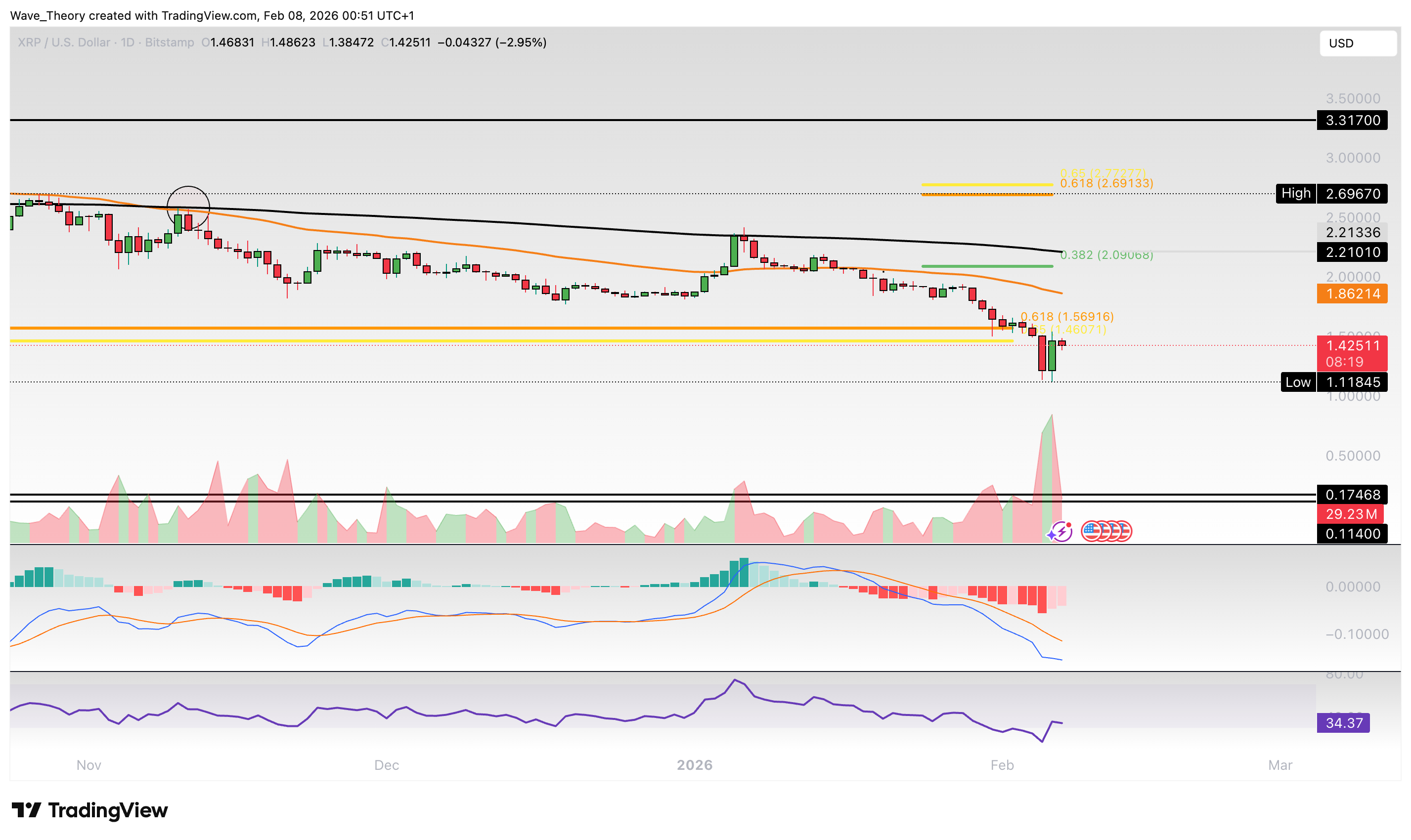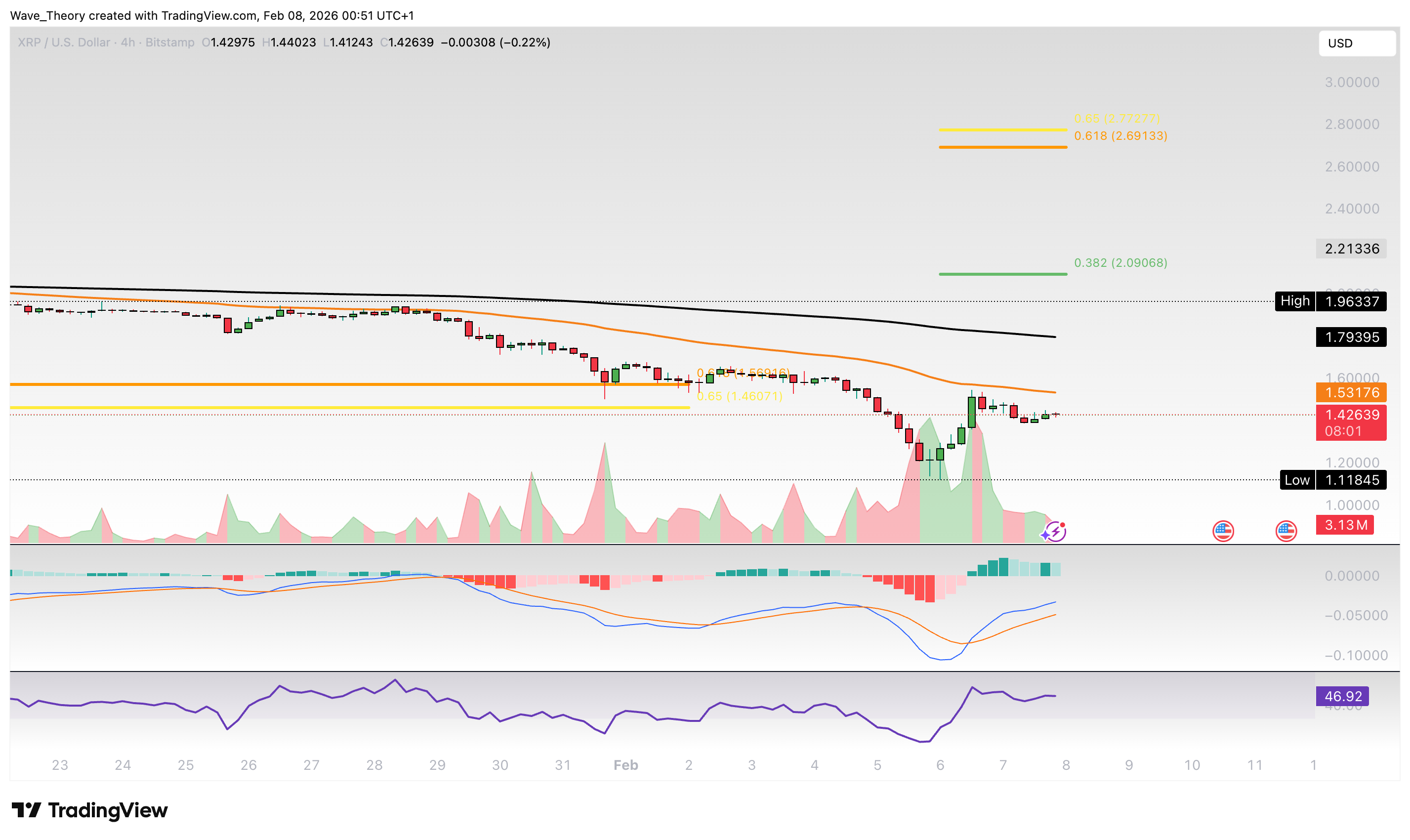 Ripple-Prognose für Sonntag, 08. Februar 2026: Der XRP Kurs hat die entscheidende Golden Ratio Unterstützung kurzfristig gebrochen. Doch jetzt kämpft sich der Kurs zurück.