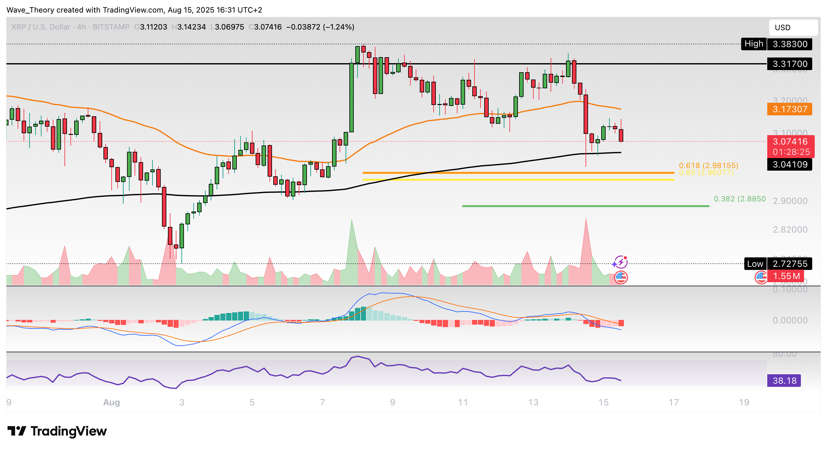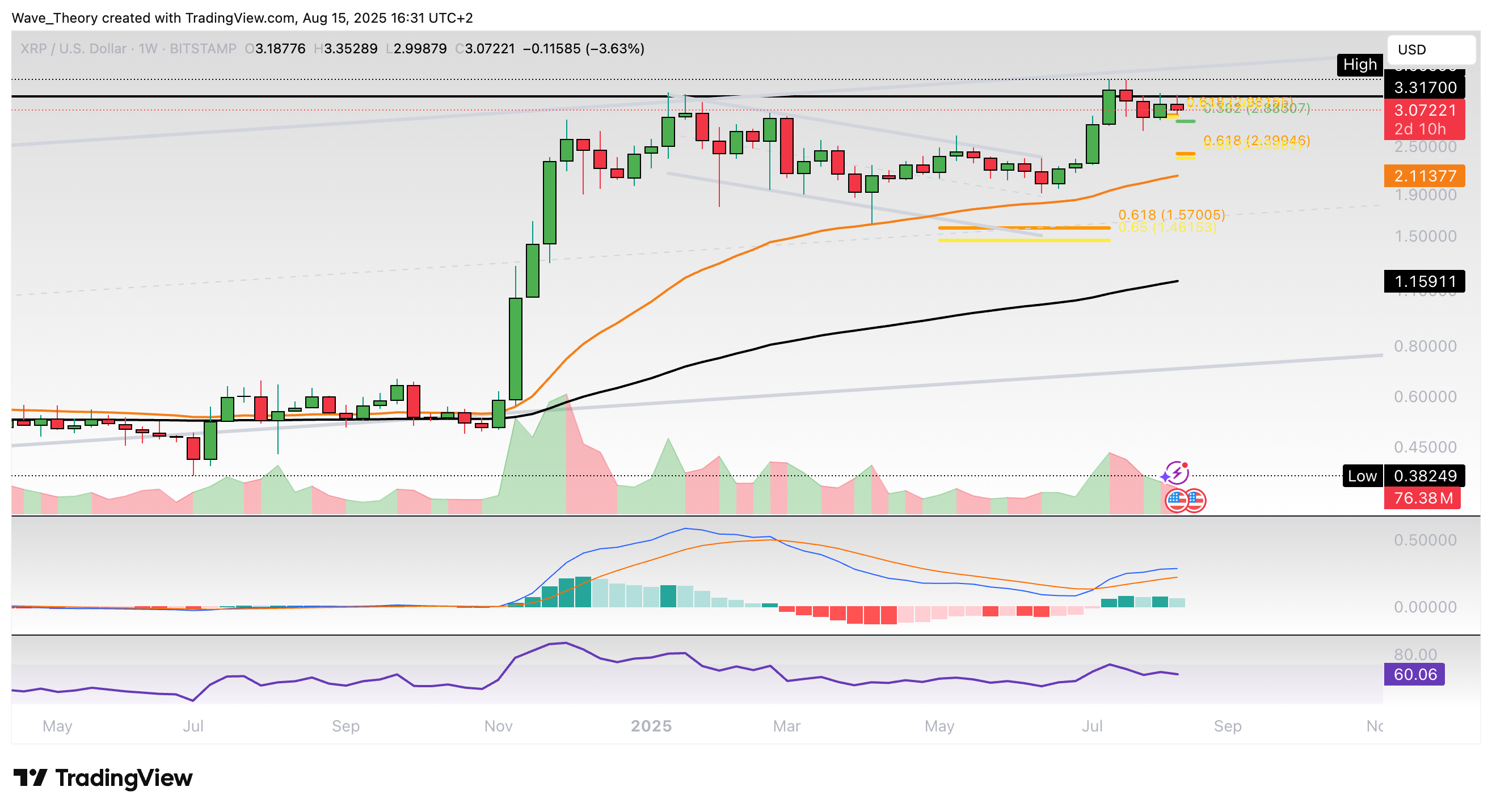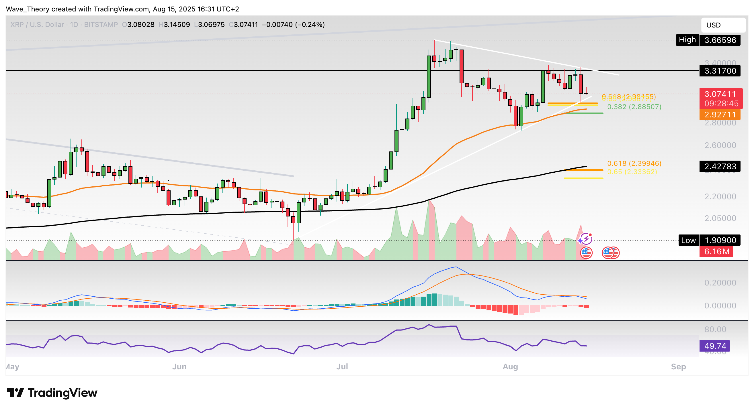 Ripple-Prognose für Freitag, 16. August 2025: Der XRP Kurs stößt jetzt auf Golden Ratio Unterstützung. Doch kann diese auch halten?