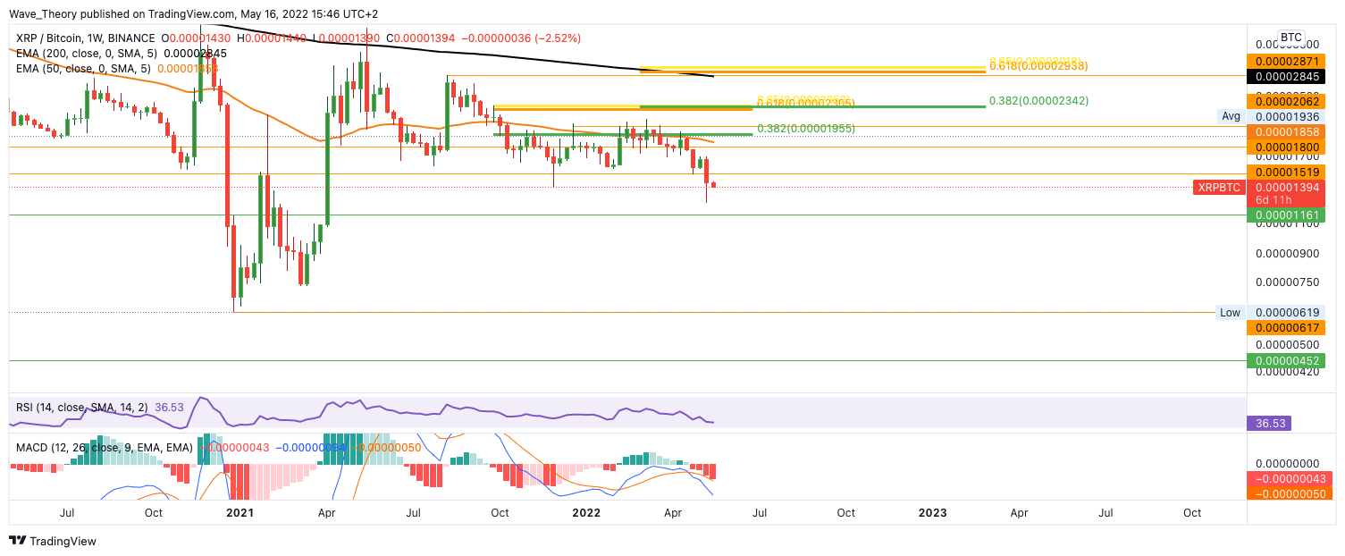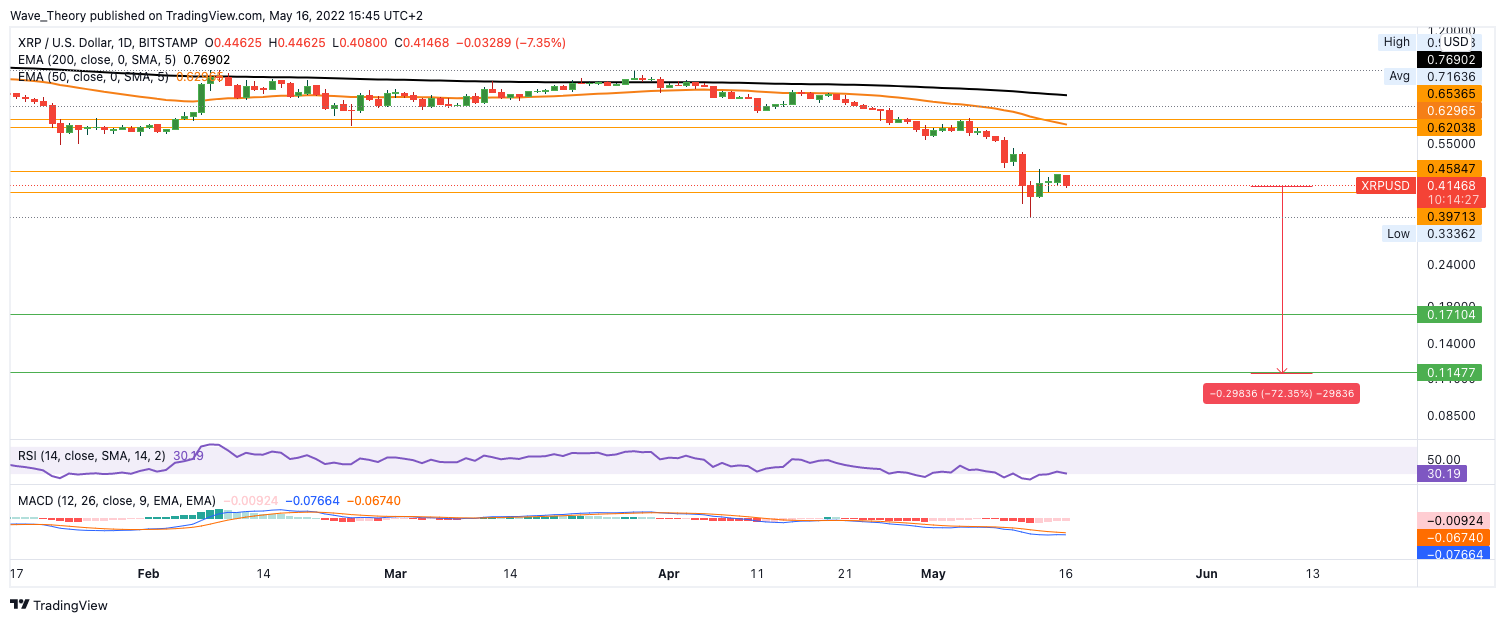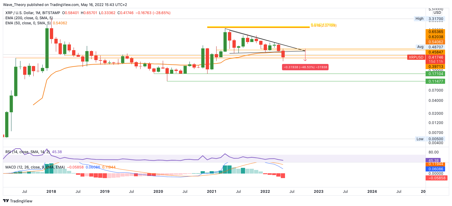 Der XRP Kurs läuft Gefahr, zum Tiefpunkt von 2020 zurückzukehren. Das impliziert einen Kursrückgang von rund 72 %.