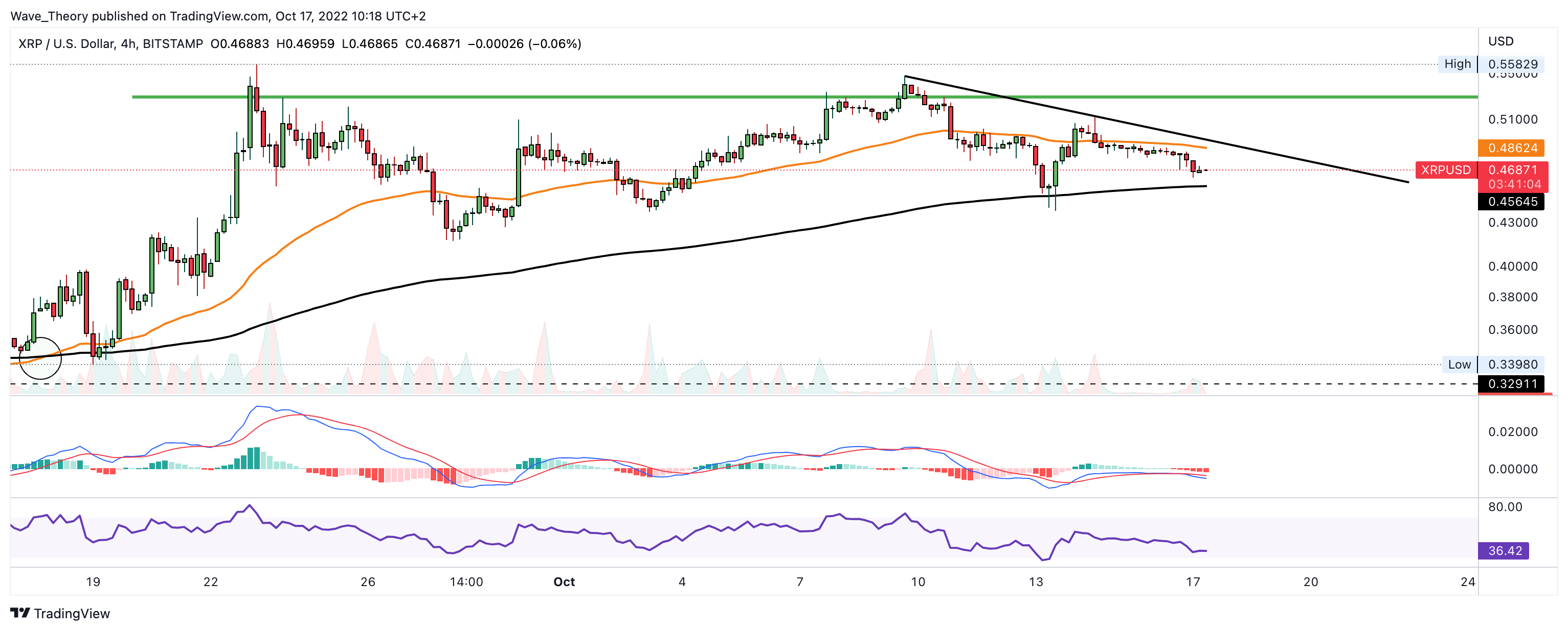 Sollte dieser ebenfalls bärisch gebrochen werden, könnte Ripple zu der Golden Ratio Unterstützung bei rund 0,39 USD zurückkehren und daran bullisch abprallen. Darüber hinaus tickt das Histogramm des MACDs bärisch tiefer und auch die MACD Linien sind bärisch überkreuzt.