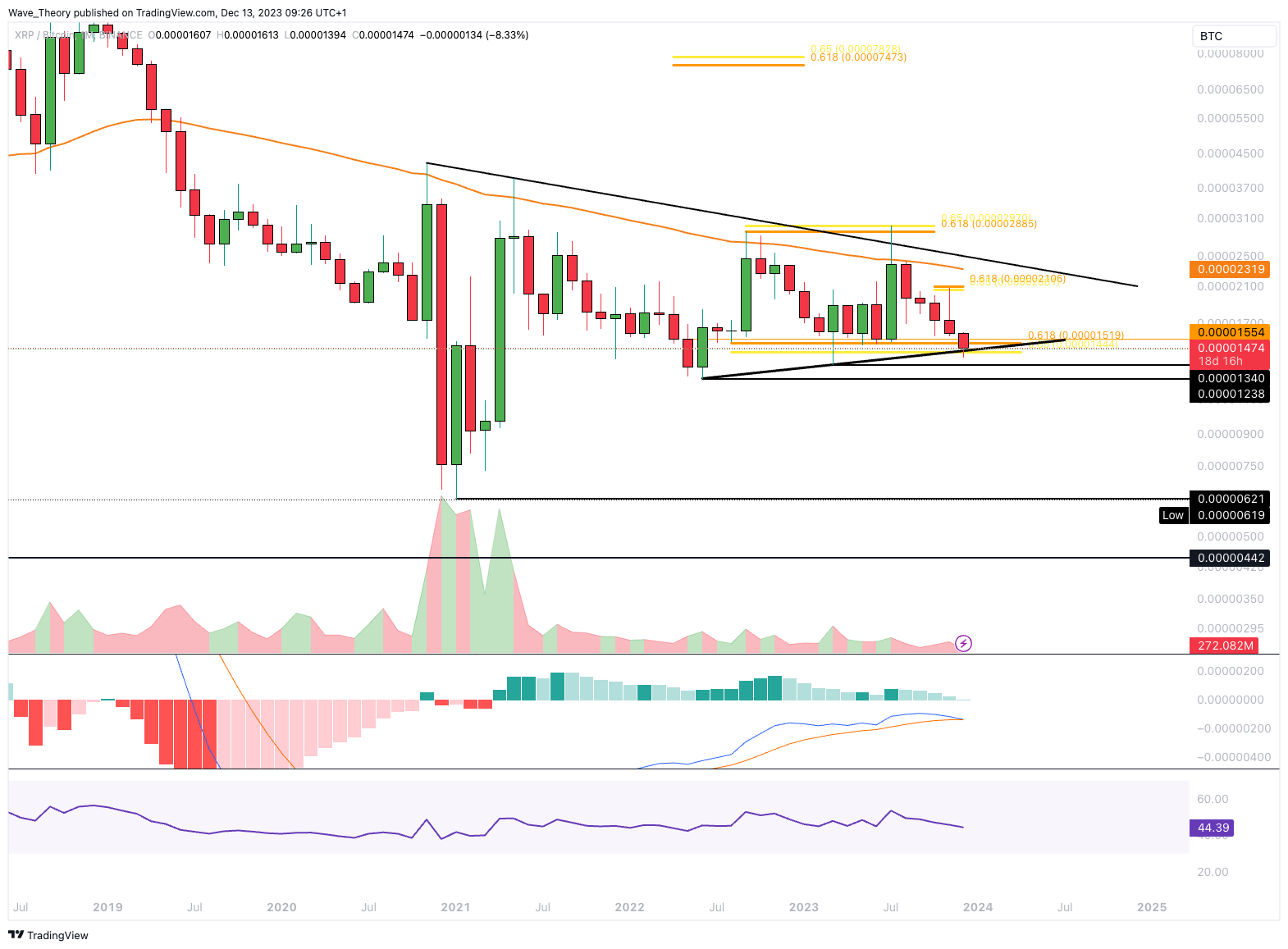 Sponsored SponsoredGegen Bitcoin befindet sich der Ripple Kurs immer noch an der Golden Ratio Unterstützung bei rund 0,0000155 BTC