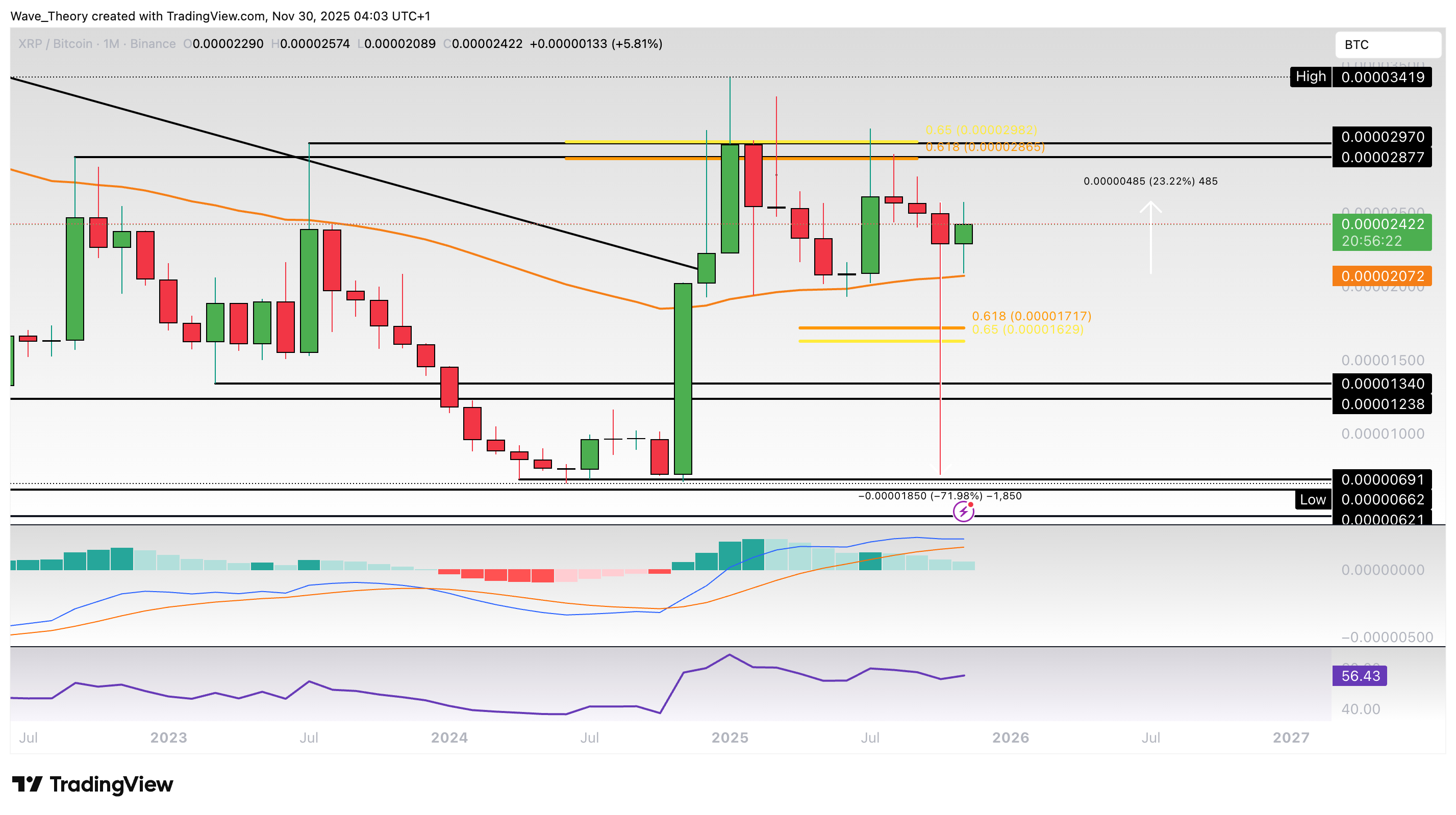 Gegen Bitcoin hält sich der XRP Kurs über dem 50-Monate-EMA