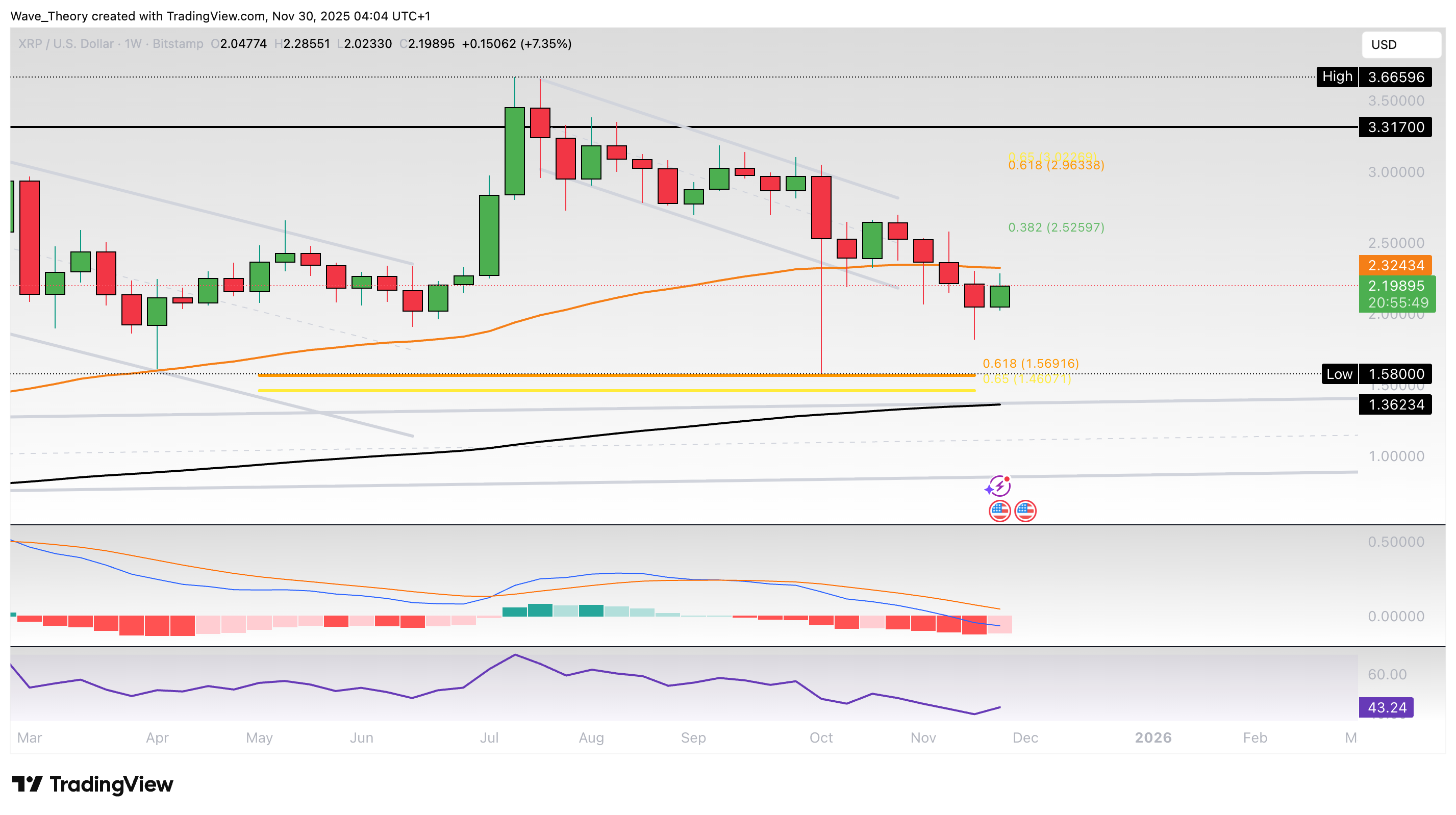 Kann der XRP Kurs den 50-Wochen-EMA Widerstand bei rund 2,32 USD überwinden?