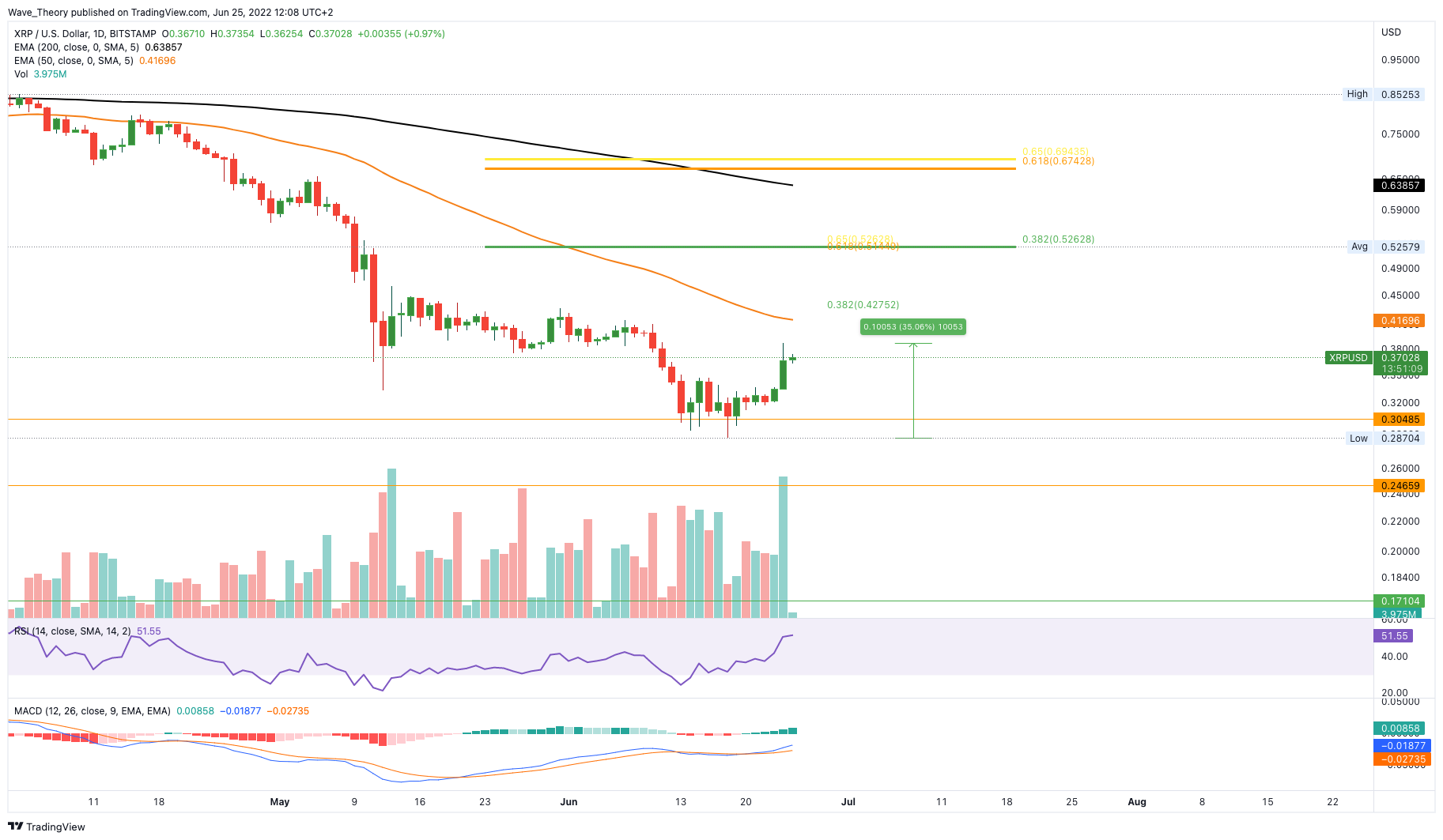 Der XRP Kurs zeichnete eine bullische Divergenz im Tageschart ab, woraufhin Ripple bereits rund 35 % steigen konnte. Steigt XRP jetzt auf 0,5 USD?