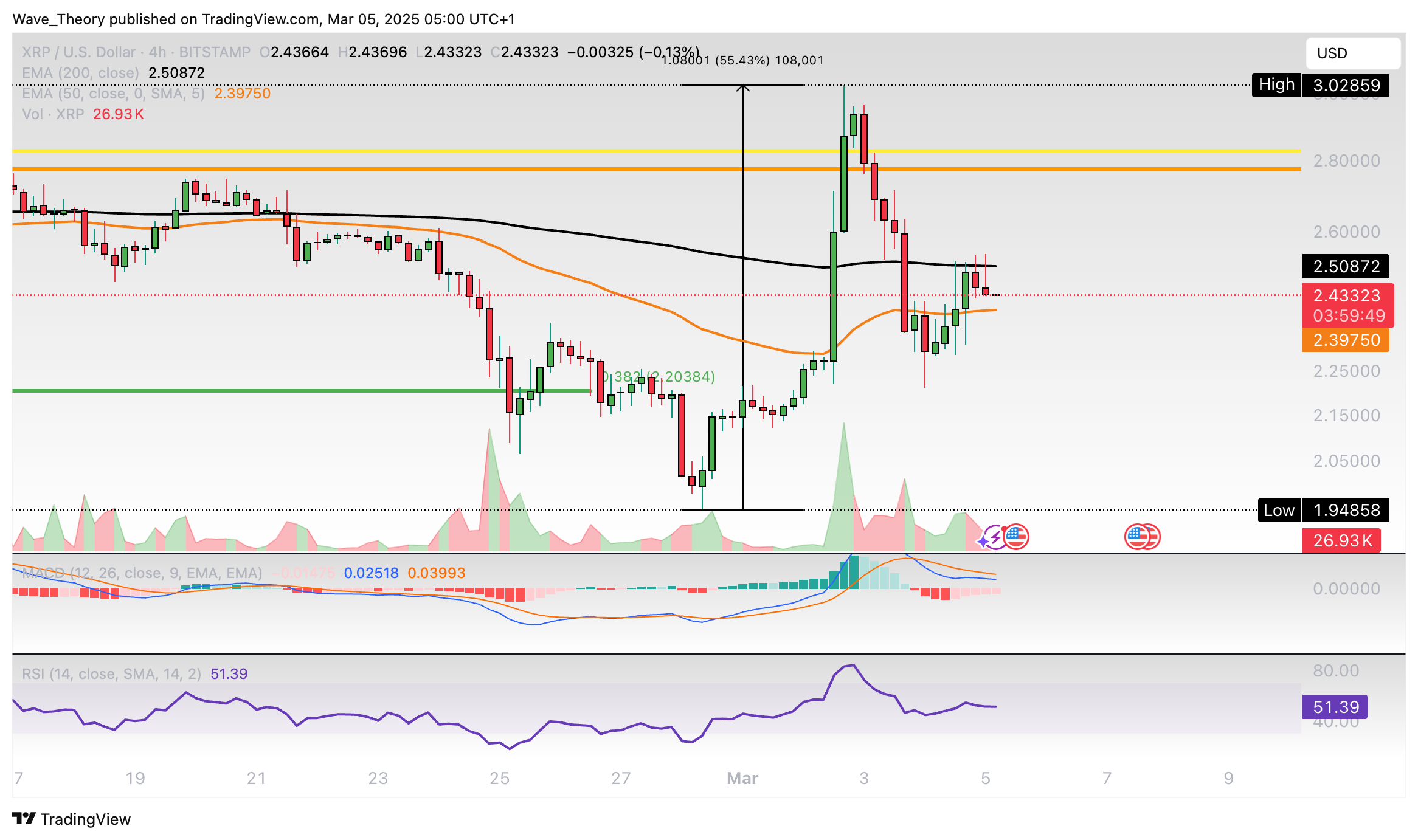 Ripple-Prognose für Mittwoch, 05. März 2025: Nach rasantem Anstieg kommt der Ripple Kurs wieder runter. Wie geht es weiter für XRP?