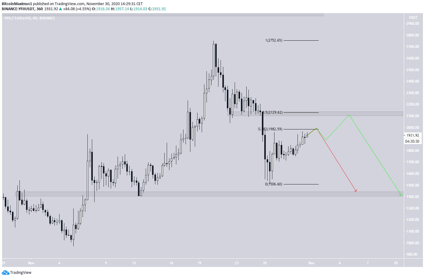Selbst wenn YFII das Level erneut durchbricht, so würde das 0,5-Fib-Level bei 2.130 USD ebenfalls Widerstand bieten. Deswegen erweist sich ein signifikanter Ausbruch vom aktuellen Preisniveau Bereich als äußert schwierig.