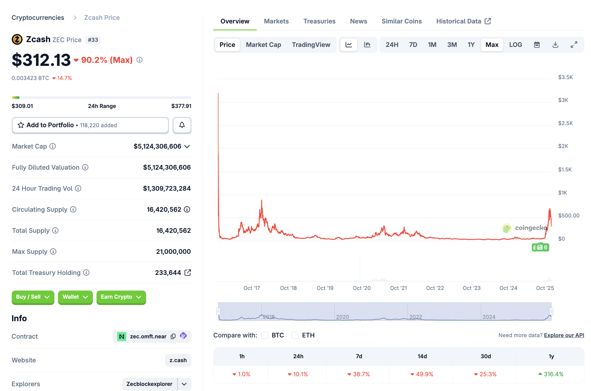 Mit einer Marktkapitalisierung von rund 5,12 Milliarden USD hält sich Zcash auf Platz 33 im Ranking der größten Kryptowährungen auf dem Markt. Das Handelsvolumen beträgt dabei rund 1,3 Milliarden USD.